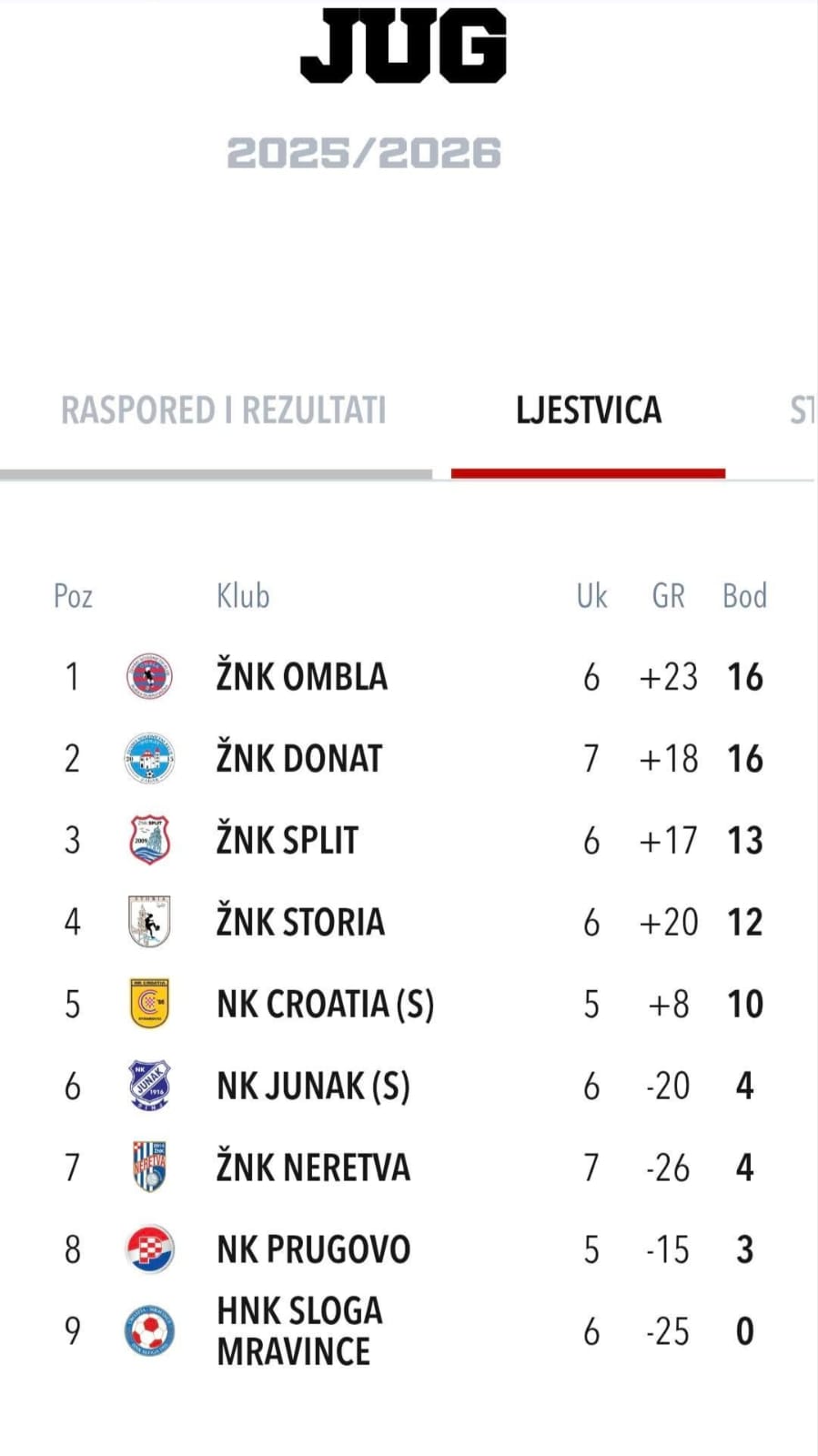 I nadalje Ombla ne ispušta vrh ljestvice. Imaju jednak broj bodova kao drugoplasirani Donat, ali i susret manje. Split koji ima jednak broj susreta kao Ombla je na tri boda razlike.