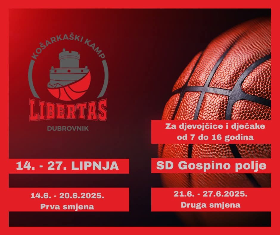 Košarkaški klub “Dubrovnik” najavljuje novo izdanje Kampa Libertas, dvotjednog košarkaškog kampa za dječake i djevojčice od sedam do šesnaest godina, koje će se održati od 14. do 27. lipnja ove godine.