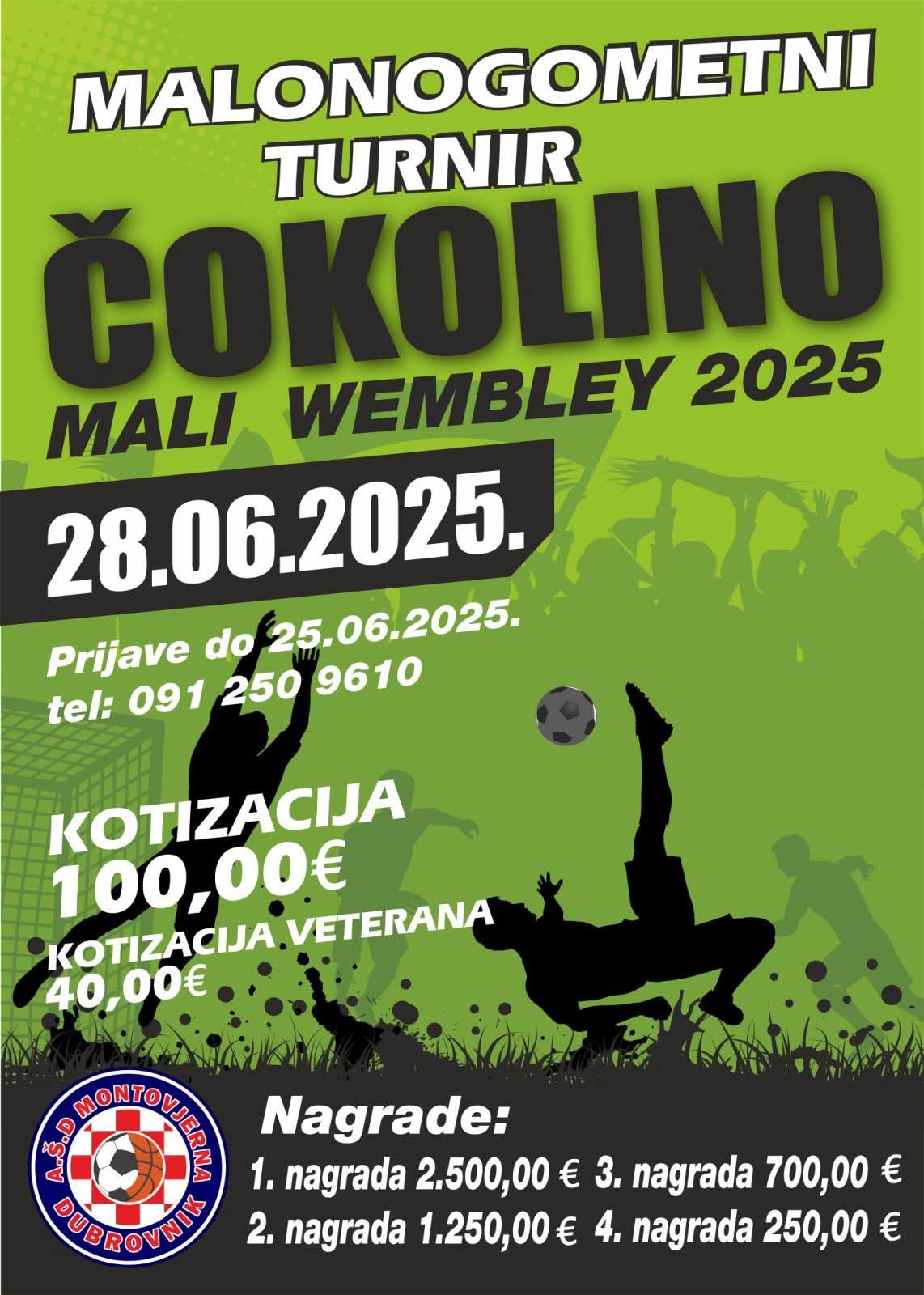 Organizator turnira, kojeg ne možeš ne voljeti, Amatersko športsko društvo “Montovjerna” na službenoj je stranici Turnira pustila vijest koja se čeka od posljednje sekunde prošlogodišnjeg finala – započele su prijave za ovogodišnje izdanje “Čokolino – Mali Wembley” 2025.