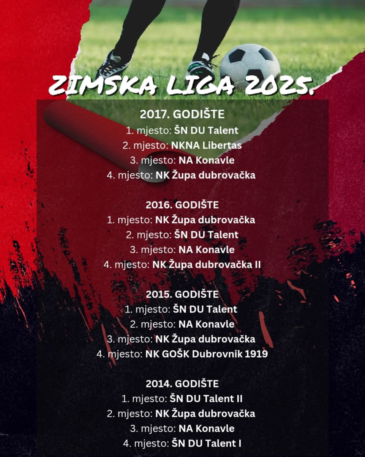 Tri vikenda igralo se prvo izdanje “Zimske Lige 2025.” u dvorani OŠ “Župa dubrovačka” za mlađe kategorije nogometaša godišta 2014., 2015., 2016. i 2017.